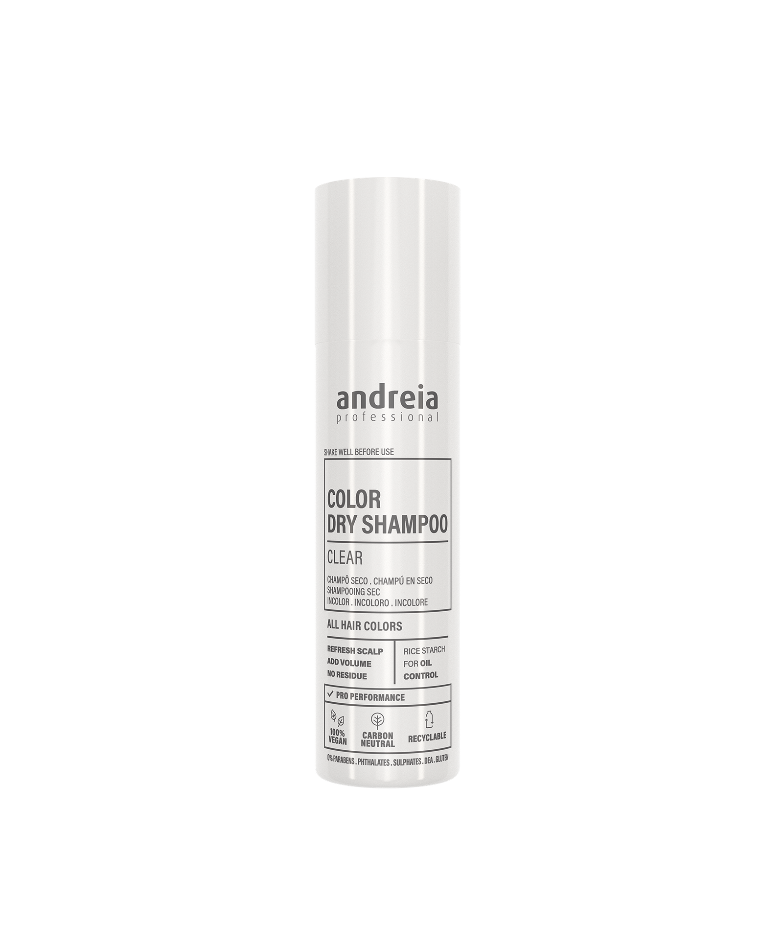 Champô seco vegan – incolor para todas as cores de cabelo. O amido de arroz absorve a oleosidade do cabelo. Couro cabeludo limpo e fresco. Mais volume. Sem resíduos. Performance profissional. 0% Parabenos, Ftalatos, Sulfatos, DEA, Glúten.