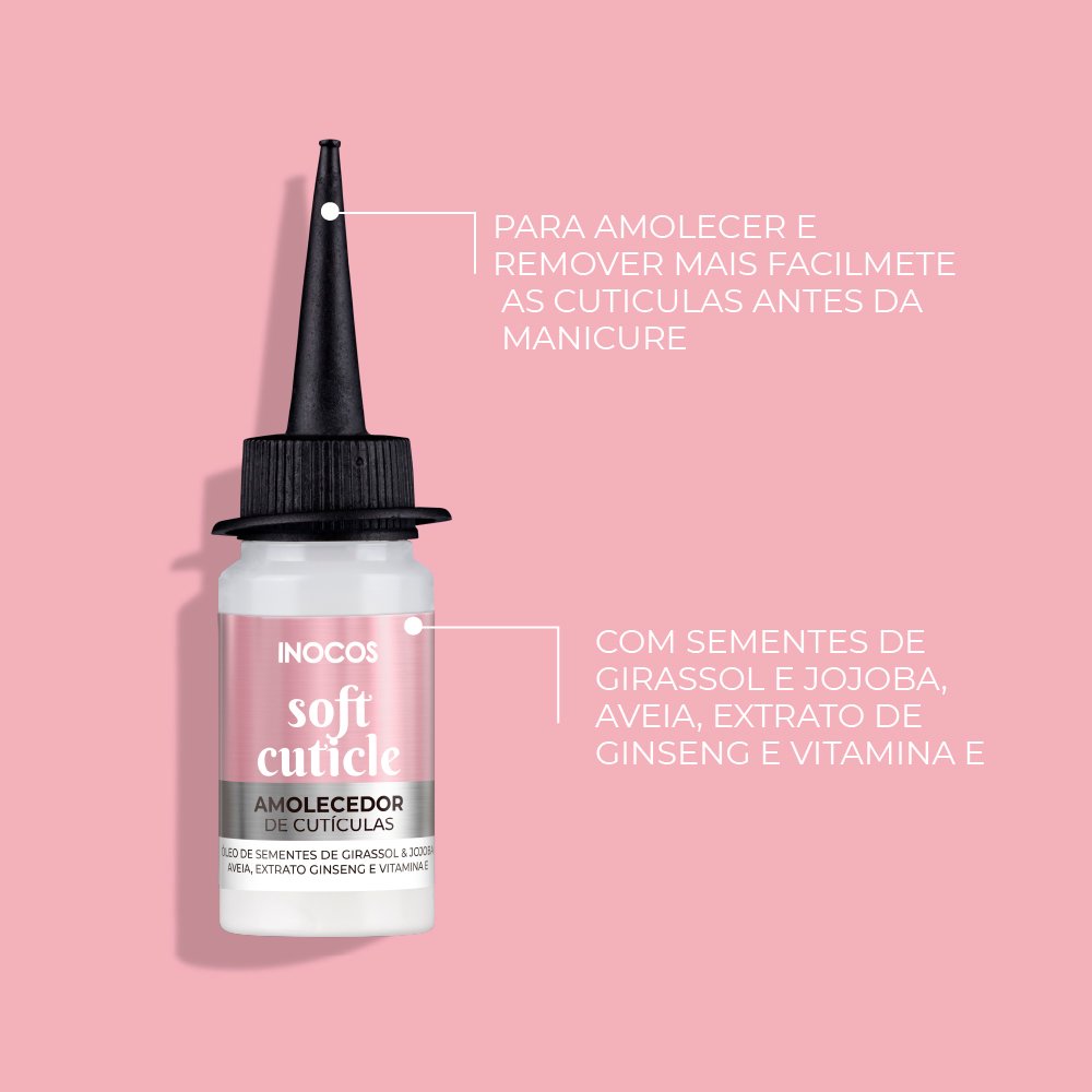 Soft Cuticle ideal para amolecer e remover mais facilmente as cutículas, antes da manicure.