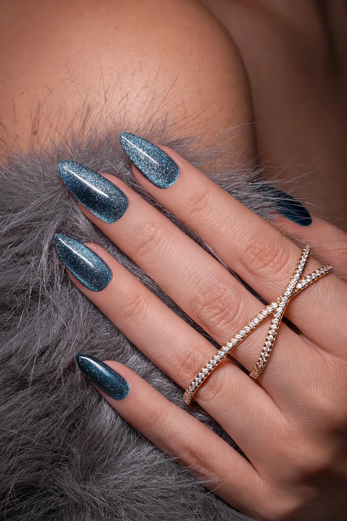 FE5 Cat Eye Effect – Glitter magnético azul petróleo com brilhos azuis