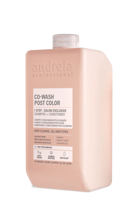 Champô e condicionador pós-coloração vegan 1 passo, exclusivo para salão. Indicado para aplicar após os serviços técnico de coloração e descoloração. Limpa em profundidade, sela a cutícula e equilibra o pH do couro cabeludo. Cabelo brilhante. Para todos os tipos de cabelos. Com proteína de quinoa, extrato de figo da índia e óleo de abacate. Performance profissional. 0% Parabenos, Silicones, Sulfatos, SLS, DEA, Glúten.