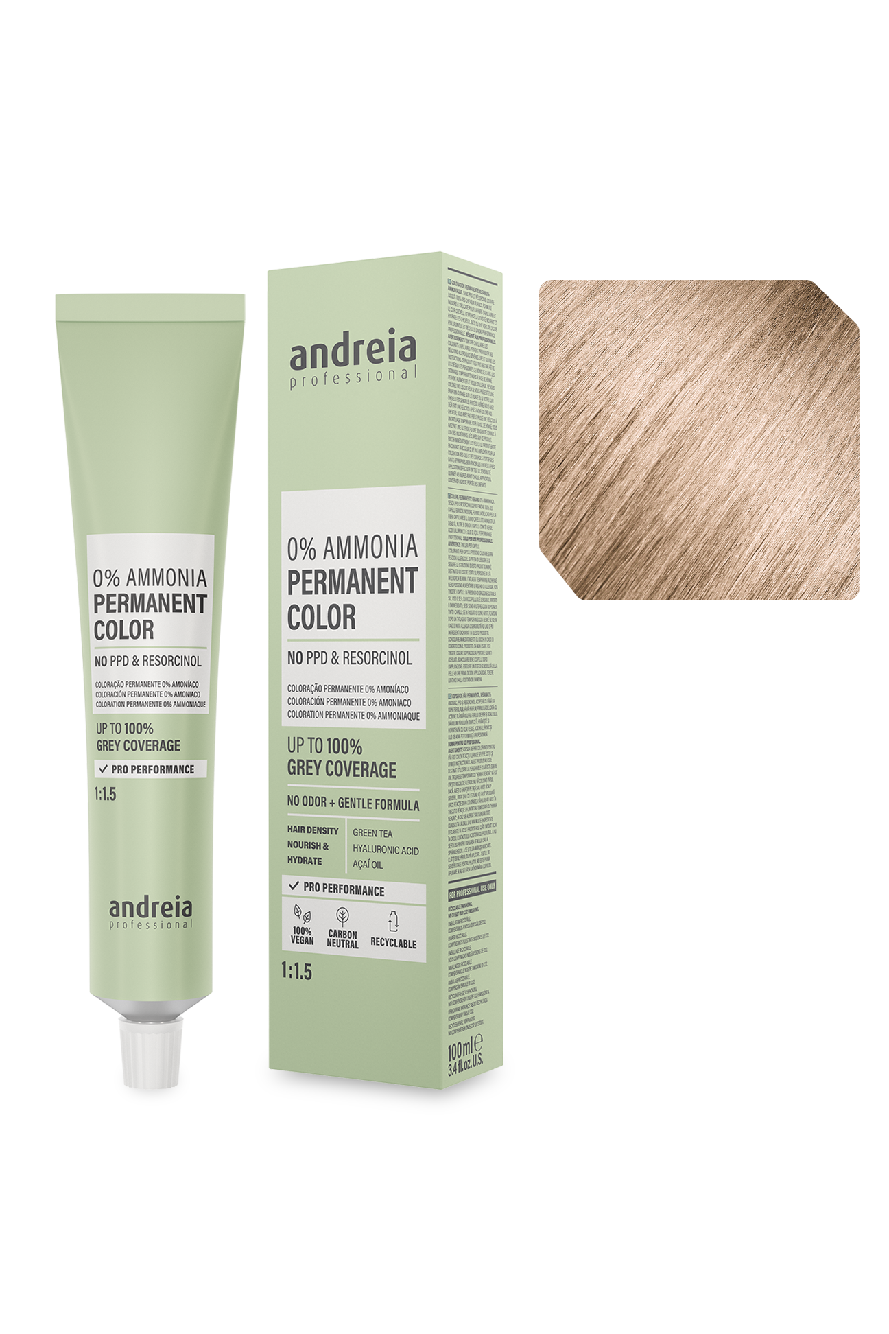 Coloração permanente vegan 0% amoníaco. Sem PPD e resorcinol. Cobre até 100% dos cabelos brancos.