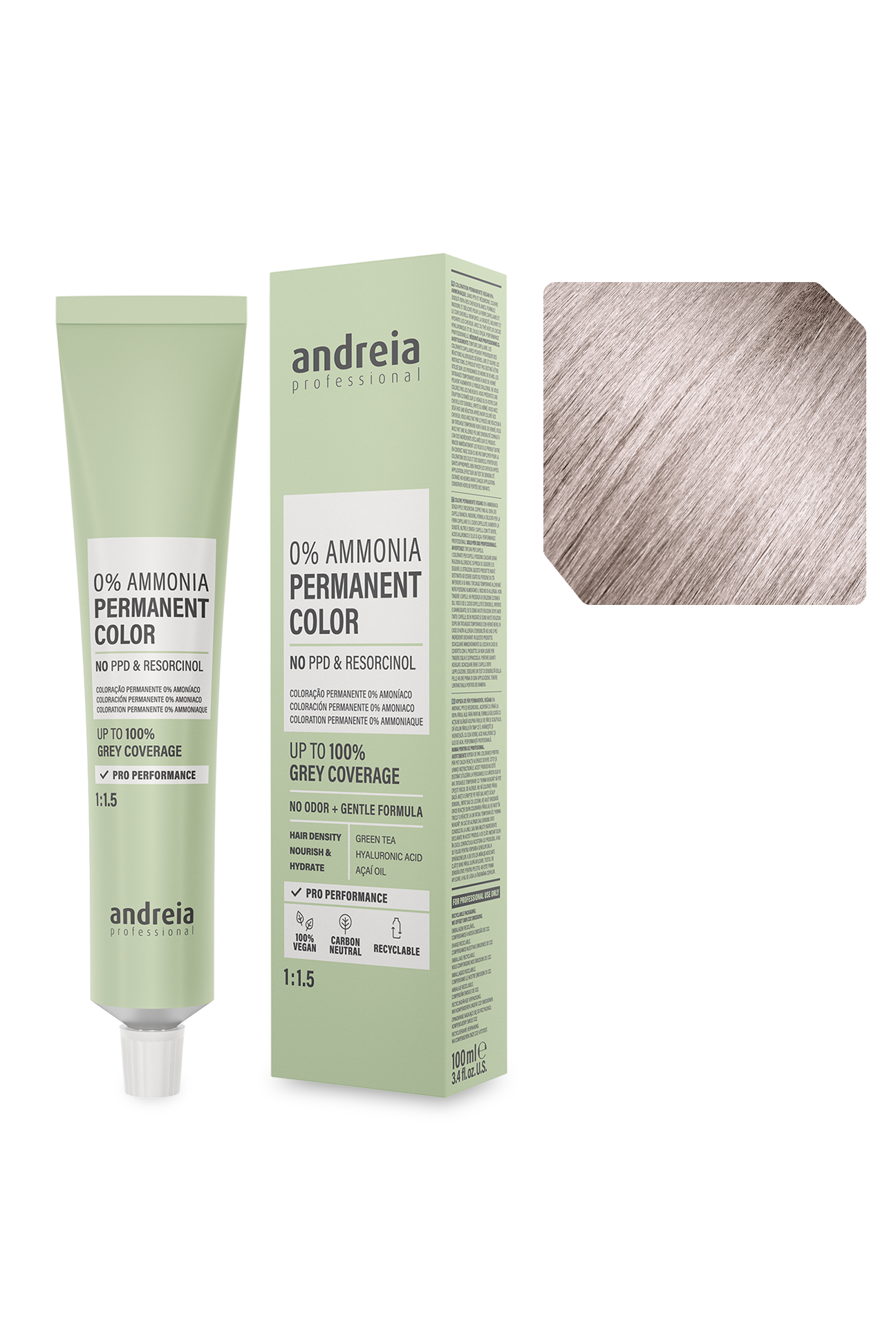 Coloração permanente vegan 0% amoníaco. Sem PPD e resorcinol. Cobre até 100% dos cabelos brancos.