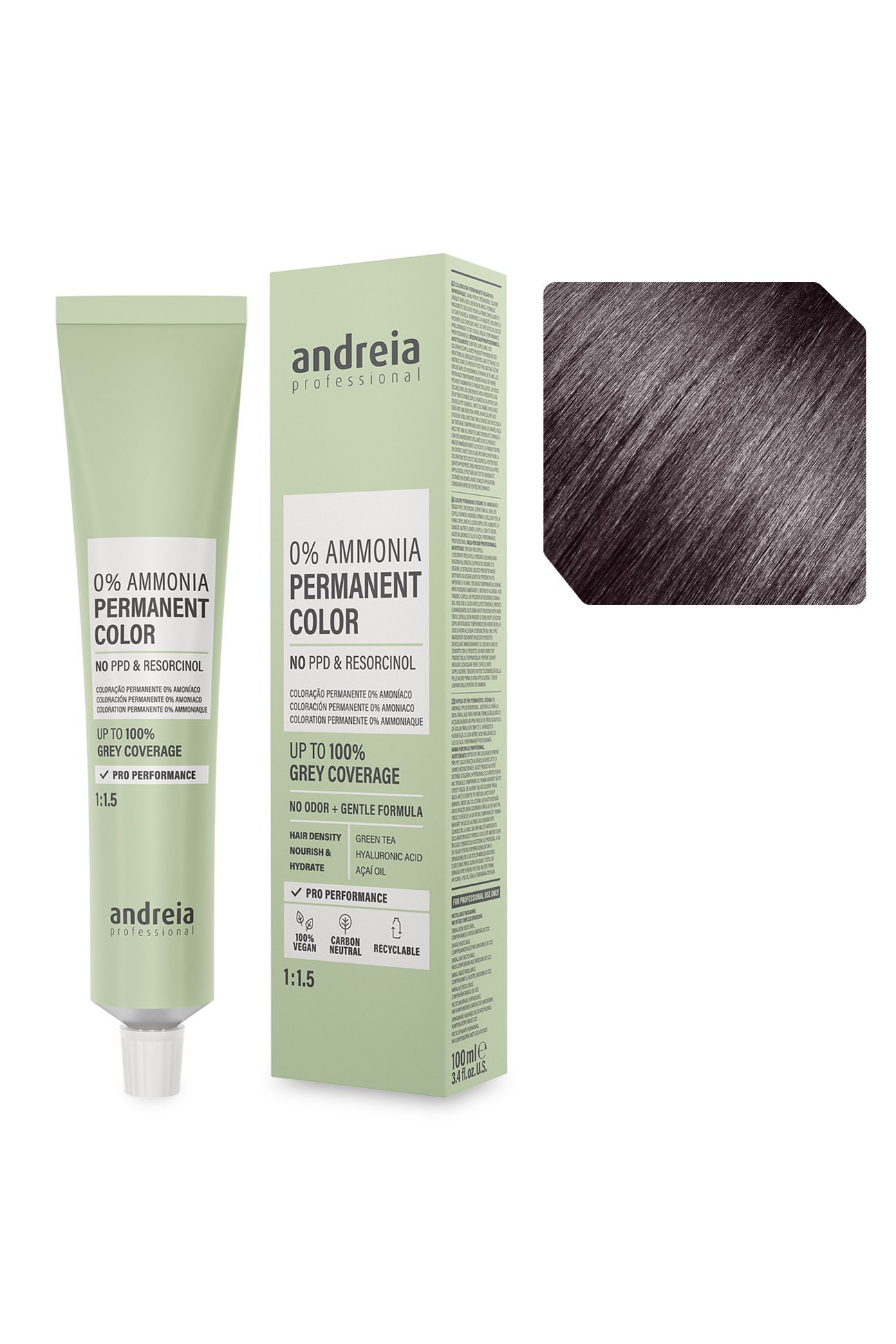 Coloração permanente vegan 0% amoníaco. Sem PPD e resorcinol. Cobre até 100% dos cabelos brancos.