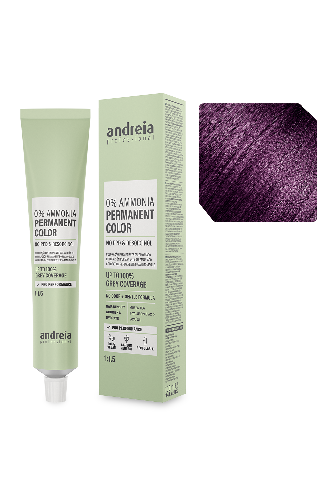 Coloração permanente vegan 0% amoníaco. Sem PPD e resorcinol. Cobre até 100% dos cabelos brancos.