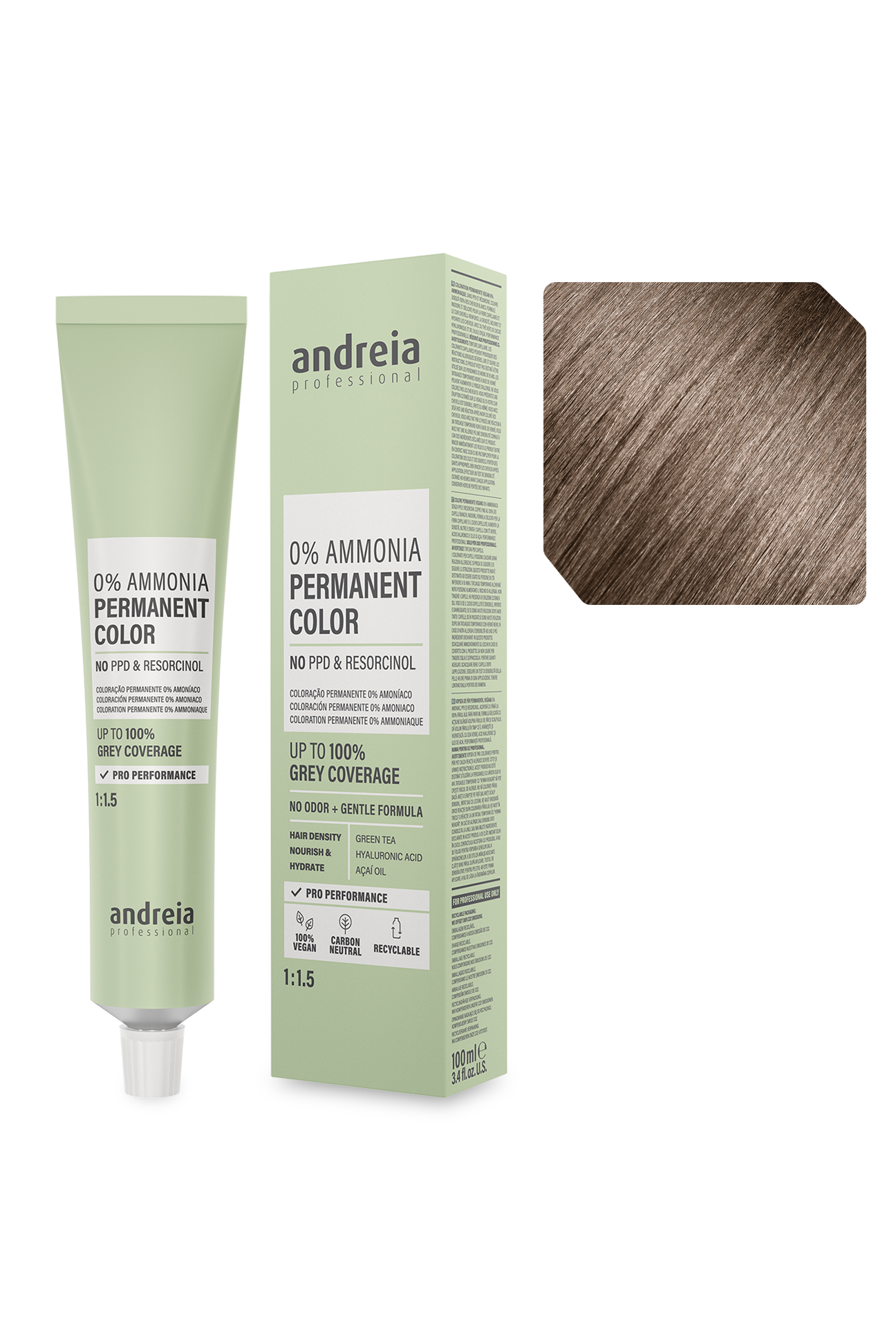 Coloração permanente vegan 0% amoníaco. Sem PPD e resorcinol. Cobre até 100% dos cabelos brancos.