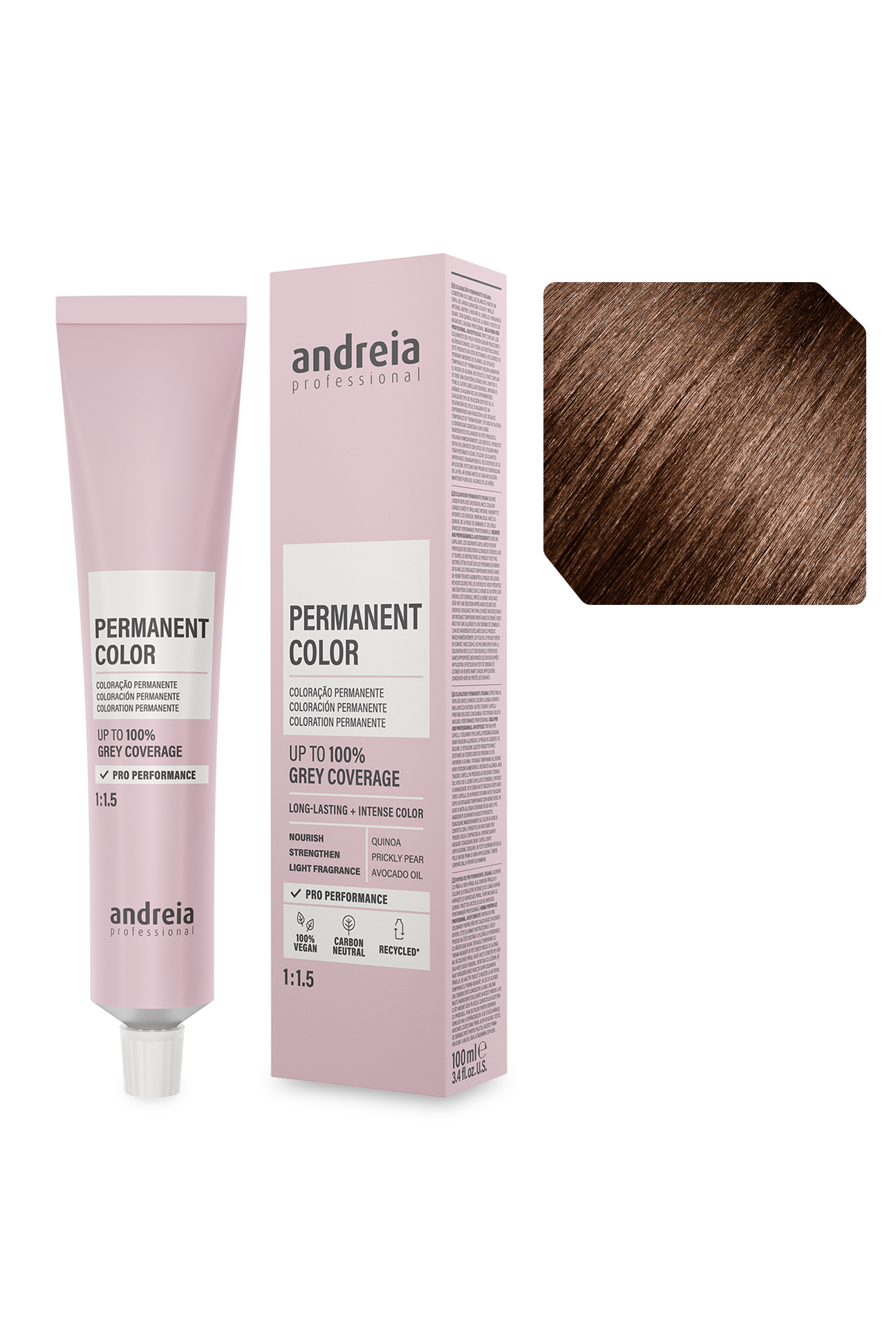Coloração permanente vegan. Cobre até 100% dos cabelos brancos.