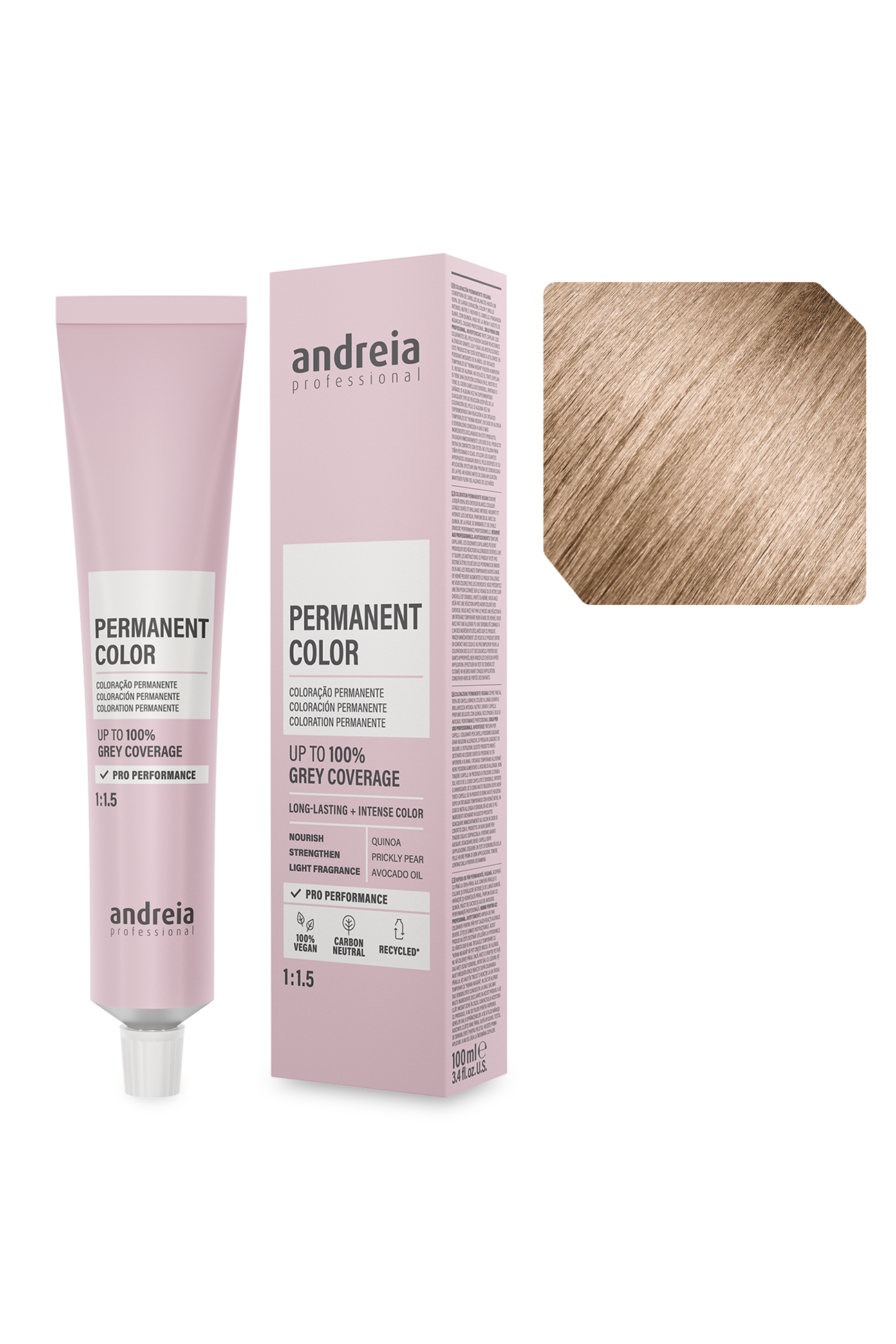 Coloração permanente vegan. Cobre até 100% dos cabelos brancos.