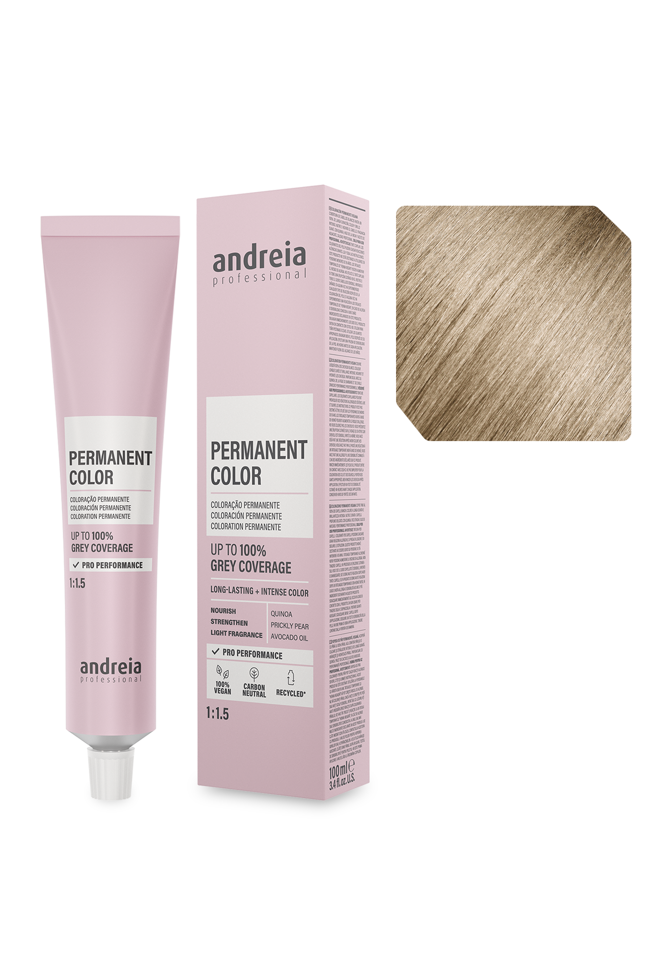 Coloração permanente vegan. Cobre até 100% dos cabelos brancos.