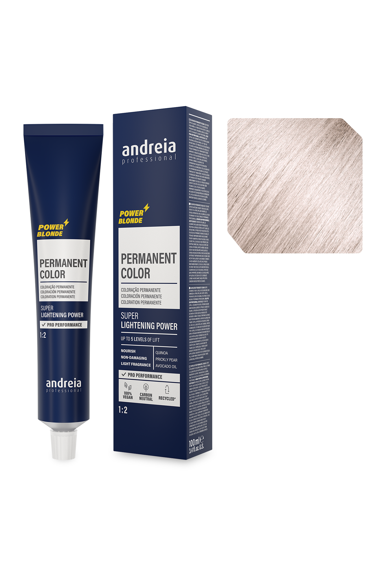 Coloração permanente vegan com poder super aclarante.