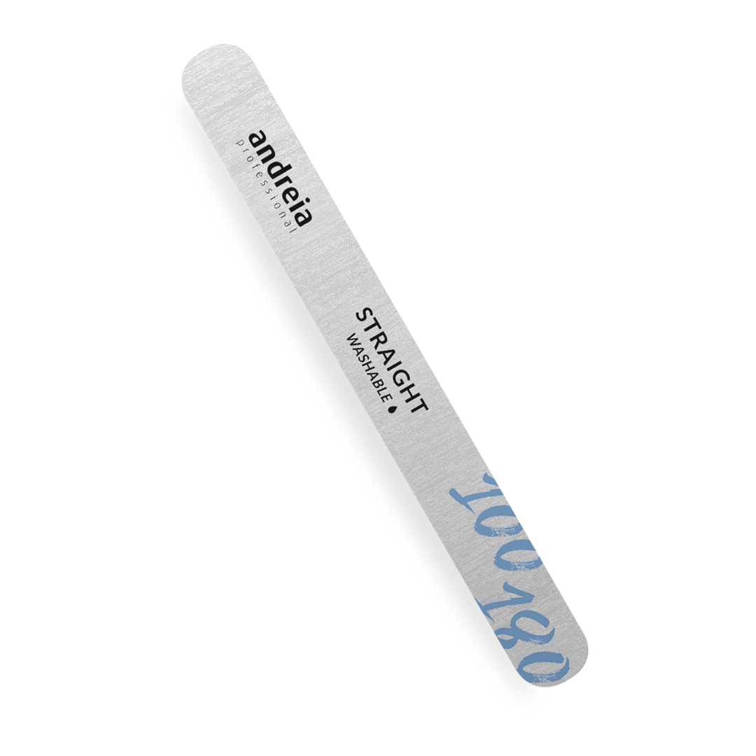 Lima lavável Japanese Paper, com elevada resistência e durabilidade. Formato reto, ideal para limagem das paredes laterais. As extremidades arredondadas permitem uma limagem ergonómica na zona da cutícula.