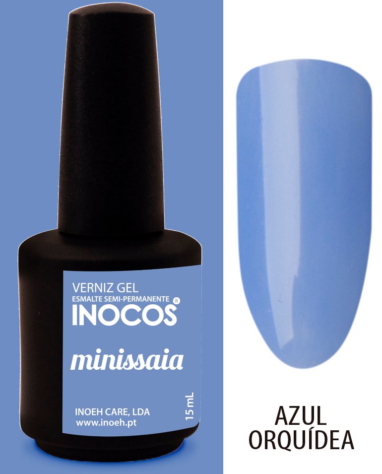 Minissaia Verniz Gel 15ml Inocos. Tonalidade Azul Orquídea.