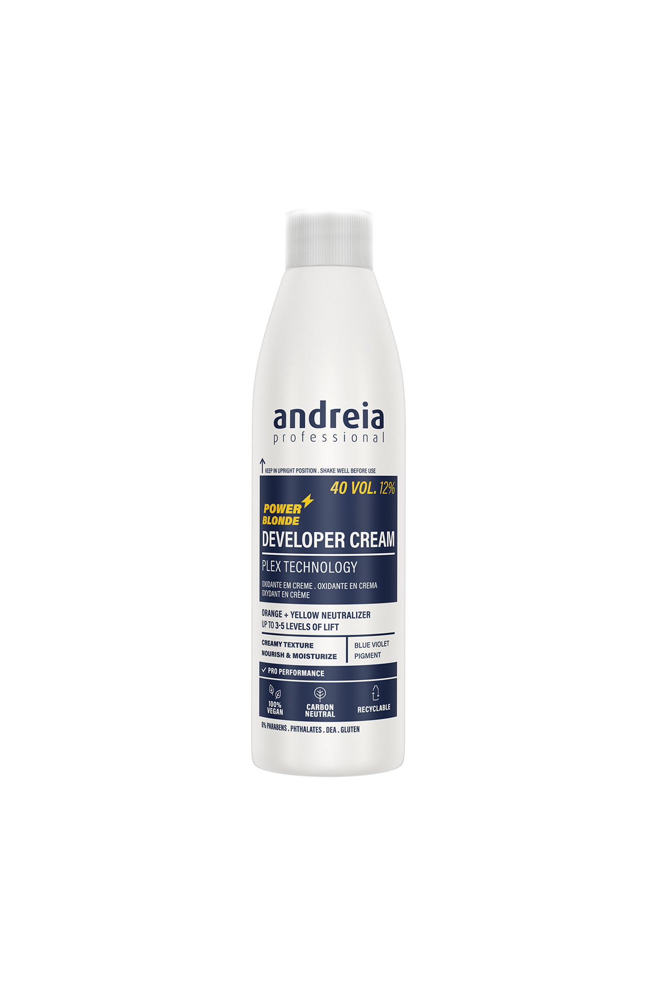 Utilizar com a gama de coloração e descoloração Power Blonde Andreia Professional. Agitar suavemente antes de usar. Reservado aos profissionais.