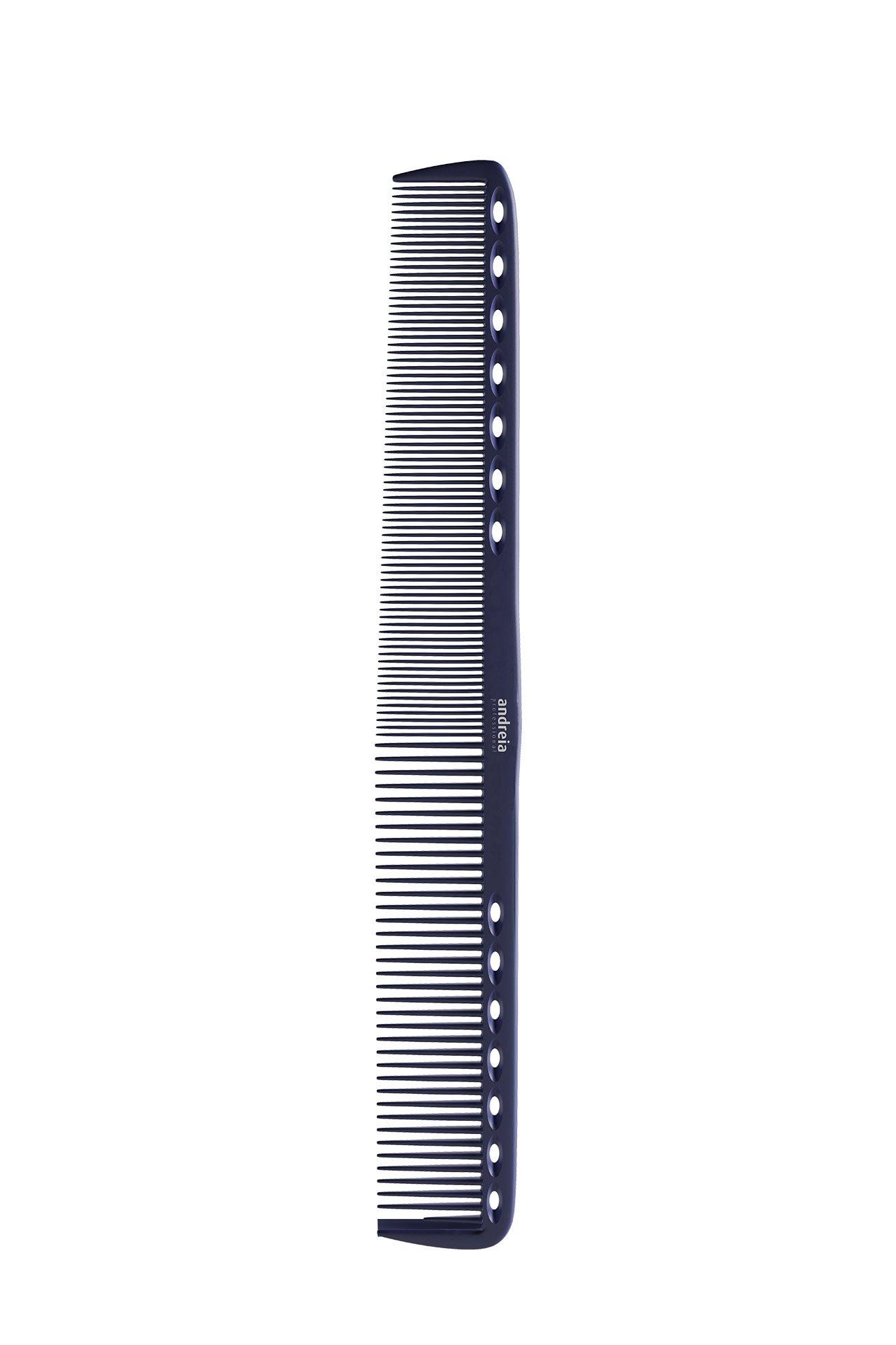 CUTTING COMB – Pente de corte com dente para seccionar madeixas de cabelo. Contém 14 furos para auxiliar na medição durante o manuseamento.