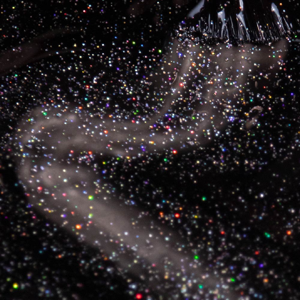 Verniz Gel Preto com Brilhantes com fórmula duradoura e pigmentada